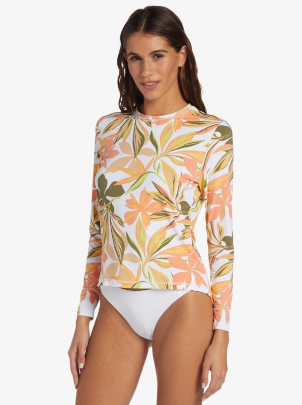 Roxy Rashguards | Sea Skippin UPF Long Sleeve Rashguard Bright White Subtly Salty Flat Women