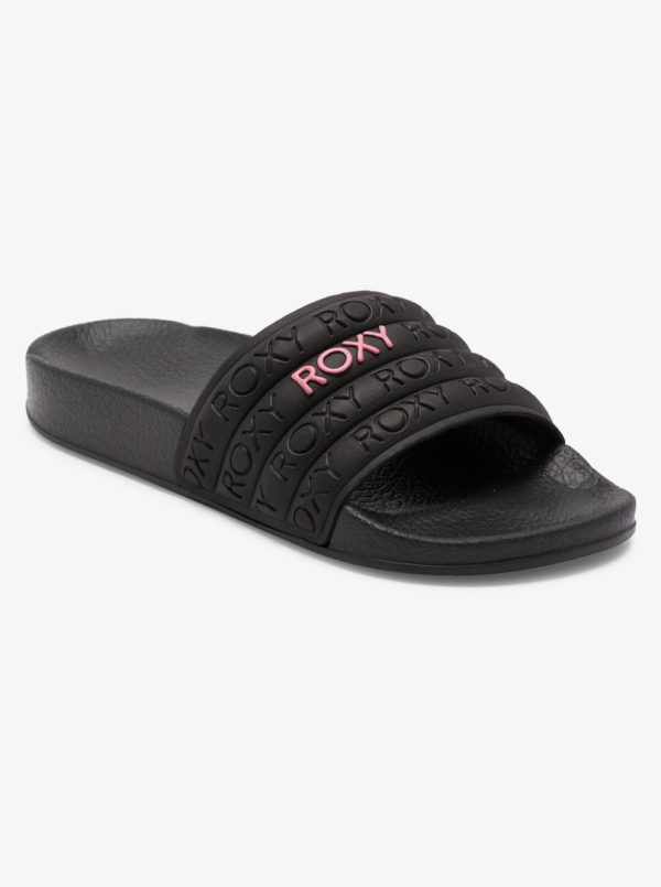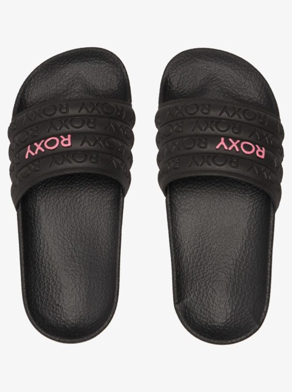 A chunky, ribbed upper with logo branding adds a standout element to these comfy ROXY FITNESS girls’ slide sandals, adding a comfort-molded footbed and a textured outsole for extra traction and support.