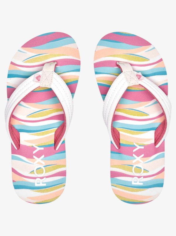 Bright and bold colorways to last you all summer long. These water-friendly thong sandals for girls are complete with a printed footbed and a textured sole for extra traction.