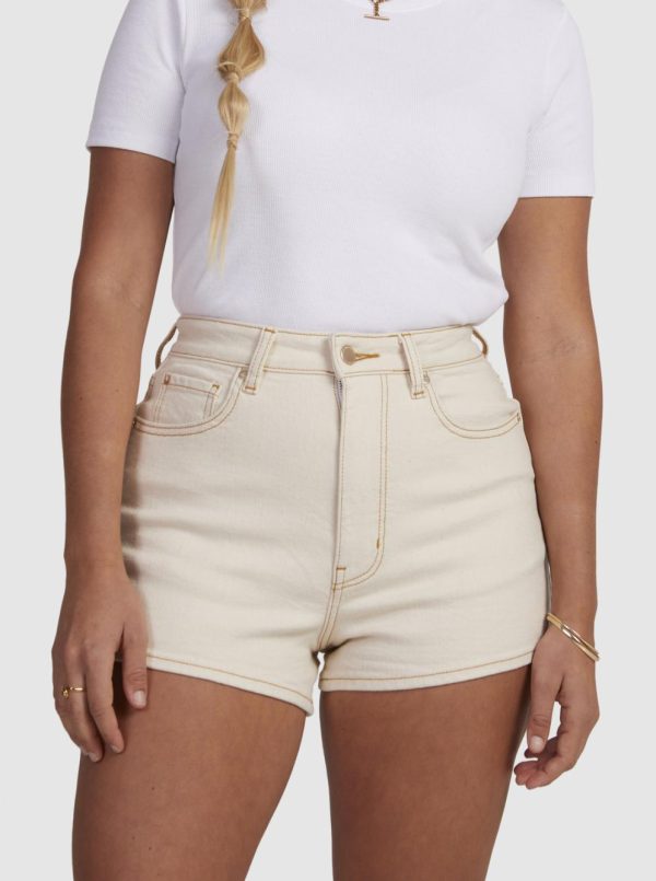 With a fitted waist and a booty-accenting shape, these timeless natural denim shorts have a slightly relaxed fit and a touch of stretch for wear-all-day comfort. Complete with zip fly and shank button.