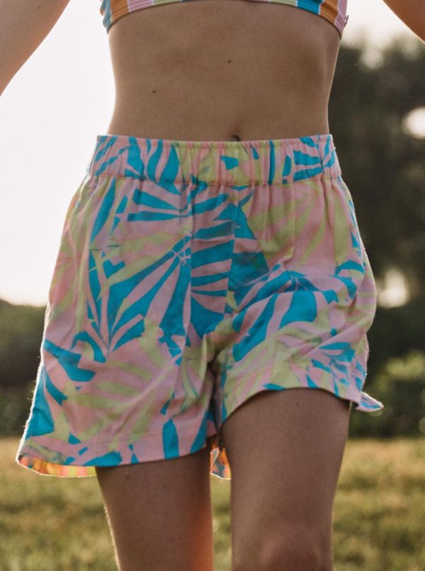 Made of printed viscose fabric with a soft and lightweight feel, the Blue Ocean Floor high-waisted shorts for girls have a comfy elastic waistband and side pockets. Perfect for sport, travel, or daily adventures.