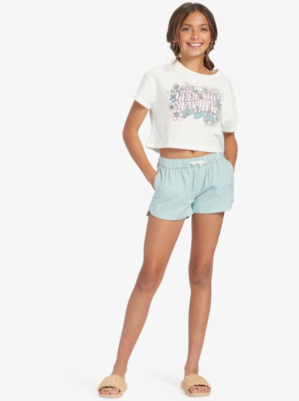 Roam the coasts in these lightweight twill-blend beach shorts for girls featuring design details like an elasticized drawcord waistband and side pockets for a classic look.