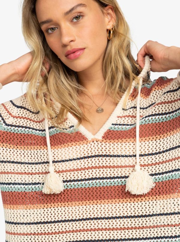 Elevate your style with the ROXY After Beach Break Stripe Poncho Hoodie: combining super-soft cotton blend fabric, yarn-dyed stripes, 3/4 sleeves and a V-neck. In a drop-shoulder fit that gives it a modern look.