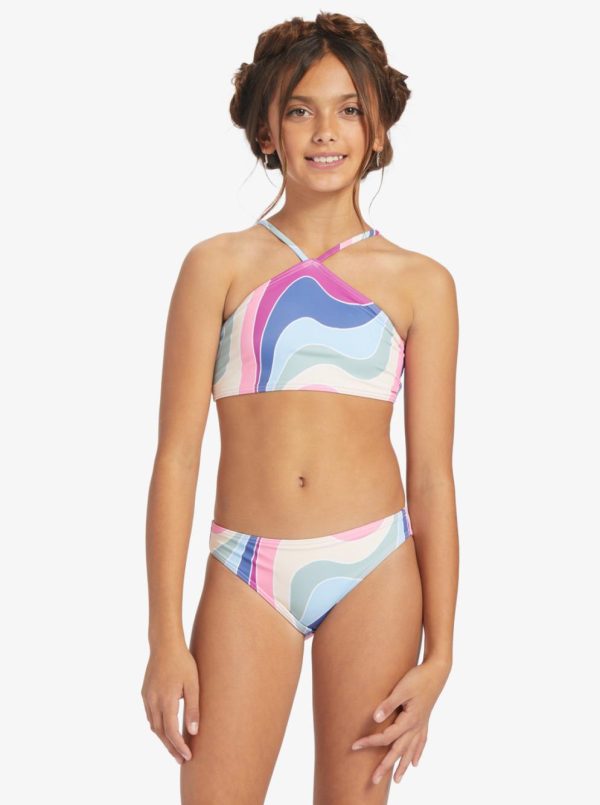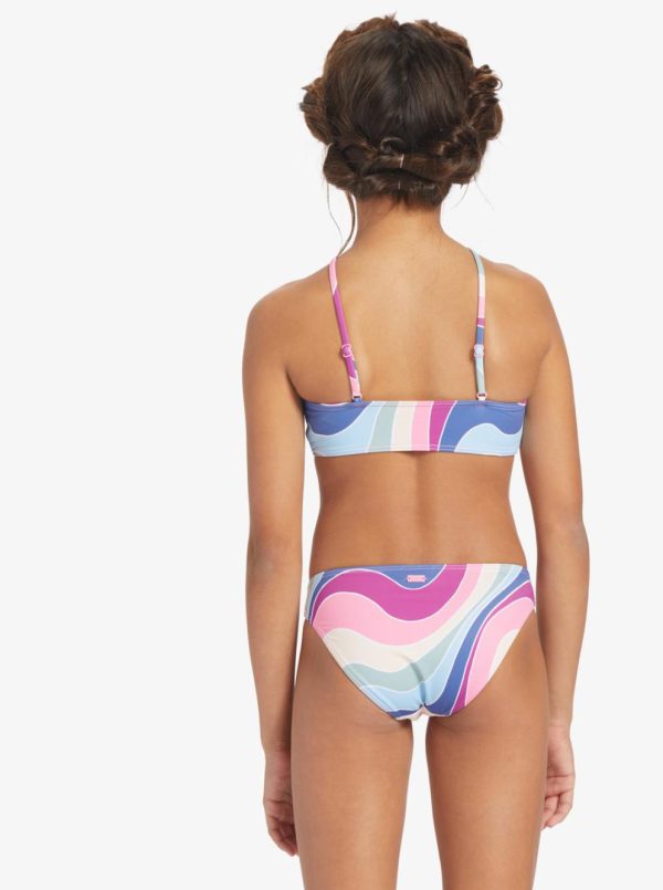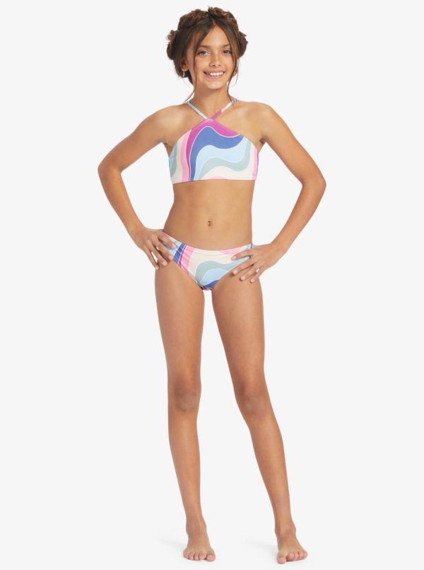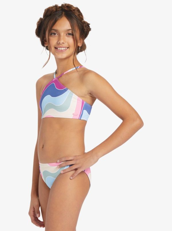 Experience summer in style with our ROXY Girl’s Vacation Memories cropped bikini set. Featuring durable, eco-conscious fabric with a soft and stretchy feel, this two-piece swimsuit has a strappy back design and removable cups.