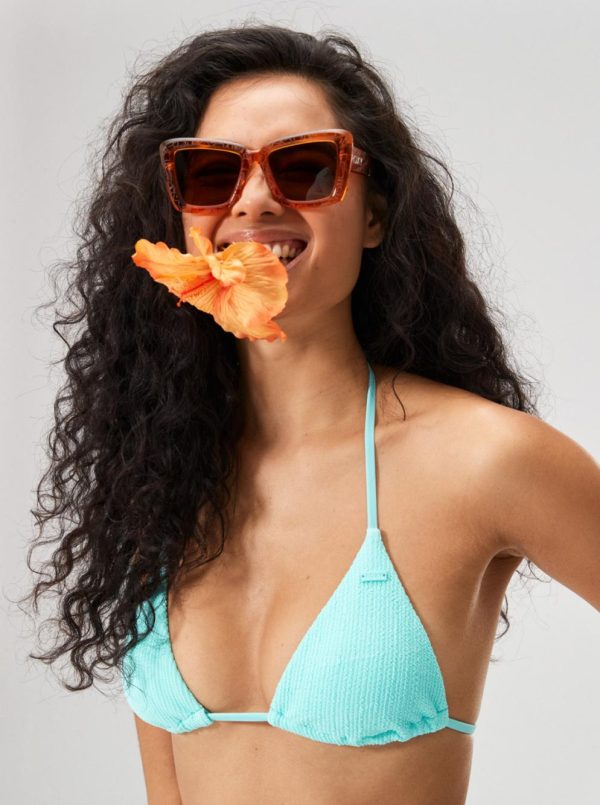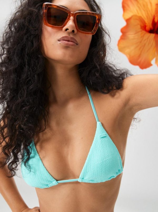 Look and feel your best in this printed slide triangle bikini top from our Aruba collection. Crafted in textured recycled swim fabric, the timeless shape features removable padding and ties at the neck and back.