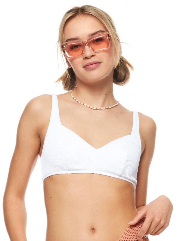 Available with or without underwire for a more natural look, this D-Cup bikini top from our Roxy Love collection adds support with side boning and a strong mesh lining. The sporty swimwear top features adjustable straps, a sturdy butterfly hook closure, and seamless finishes to compliment your shape.