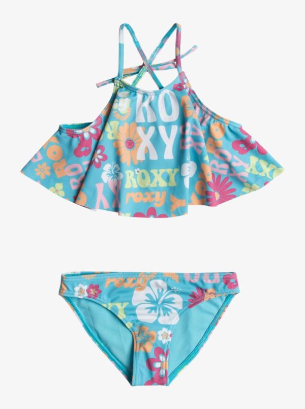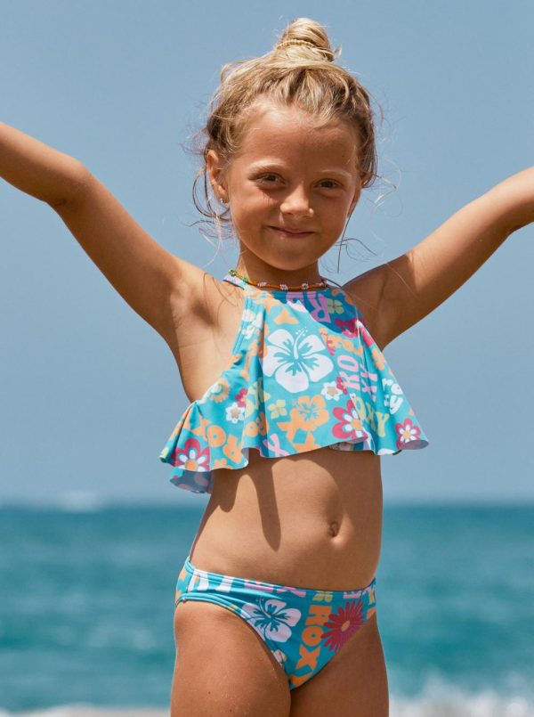 Girl’s 4-16 Flower Vintage Power Two Piece Flutter Bikini Set For Girls